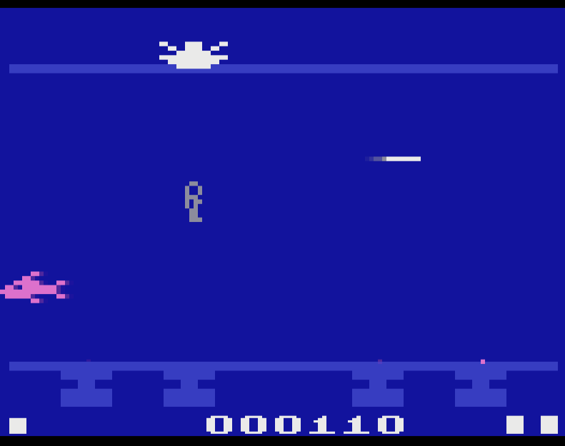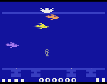 - Setting the left difficulty switch to 'A' position sets the game in hard mode, where the sharks spawns more frequently.
